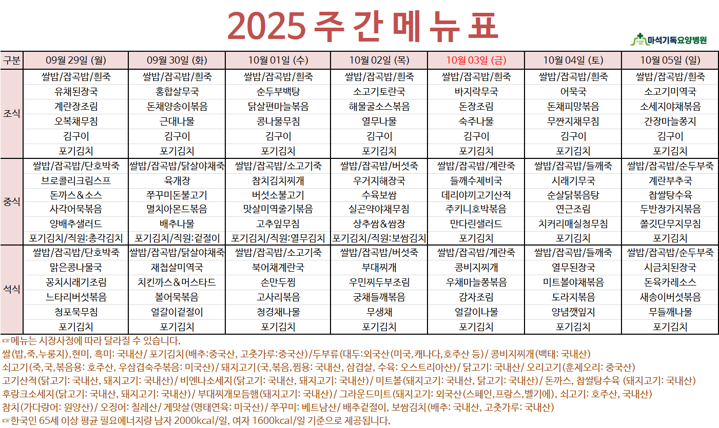 2025.09.29~2025.10.05 ÁÖ°£½Ä´Ü