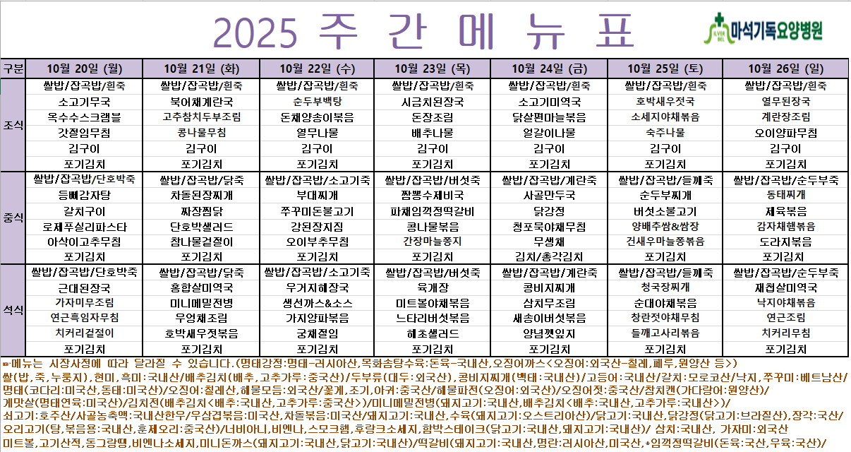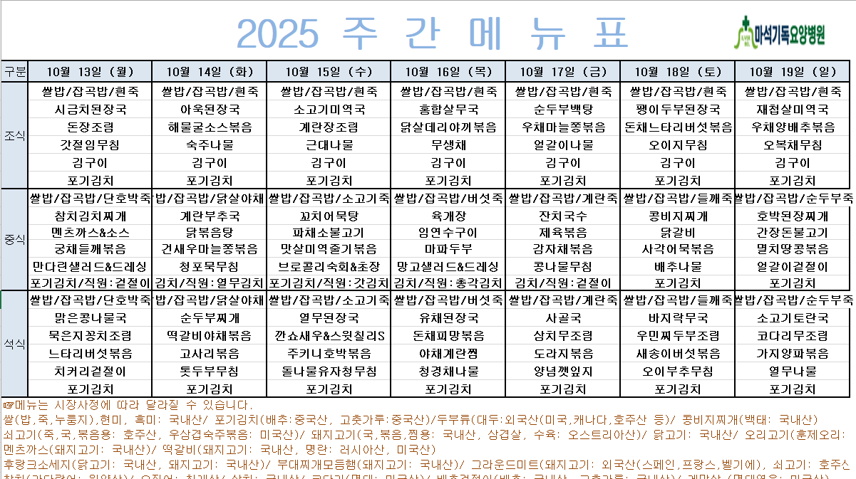 25.10.13-25.10.19 ÁÖ°£½Ä´Ü