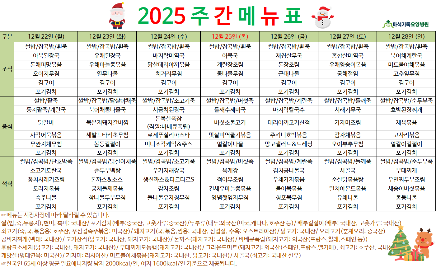 25.12.22-25.12.28 ÁÖ°£½Ä´Ü