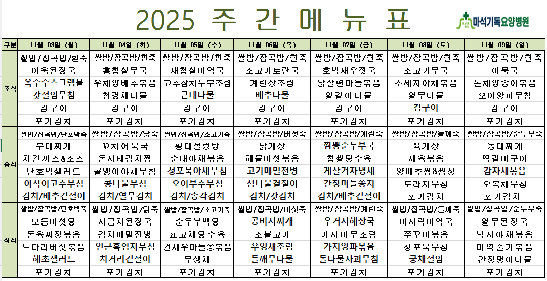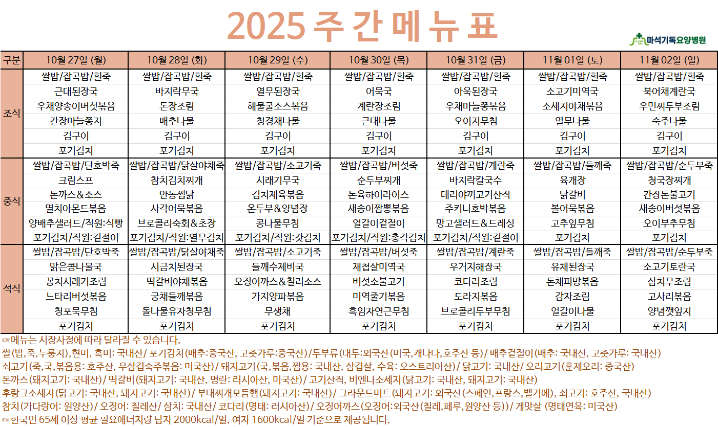 25.10.27-25.11.02 ÁÖ°£½Ä´Ü